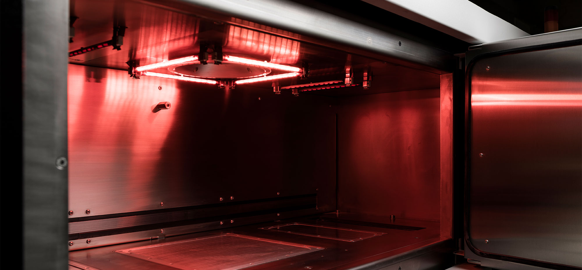 Der wartungsarme Prozessraum aus rostfreiem Material ist mit hochwertiger Wärmeisolierung ausgestattet und hält dadurch den Energieverbrauch niedrig. Die hocheffiziente Infrarotheizung sorgt für schnellste und gleichmäßige Erwärmung der Pulveroberfläche. Das Präzisions-Punktpyrometer regelt in Echtzeit die Prozesstemperatur und gewährleistet somit reproduzierbare Bauteileigenschaften und einen sicheren Prozess mit höchster Bauteilqualität.