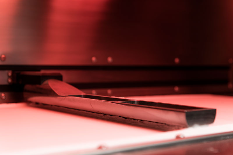 Die innovativen und energiesparenden Infrarotheizstrahler erwärmen in kürzester Zeit die Pulverbettoberfläche auf bis zu 250°C. Das System wird über eine Präzisions- Temperaturregelung gesteuert, was reproduzierbare Bauteileigenschaften für das gesamte Bauvolumen ermöglicht.